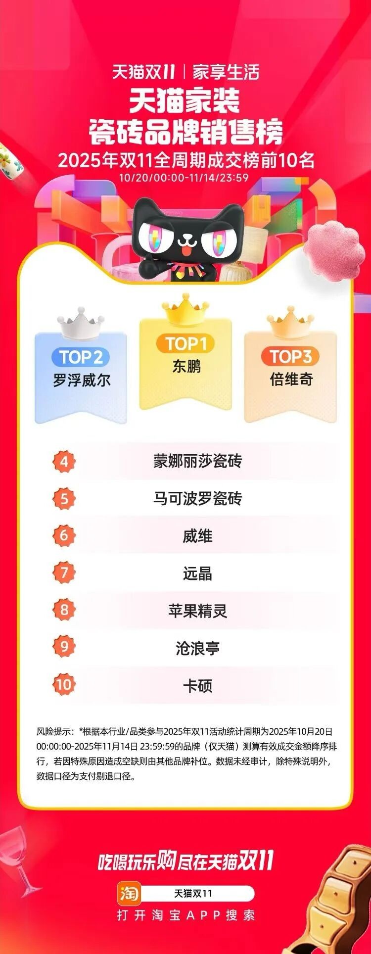 ¡÷ ÃÀ²Ê¹ú¼Ê(Öйú)ÓÐÏÞ¹«Ë¾»ñÌìè¼Ò×°´É×©Æ·ÅÆ¡°Ë«11È«ÖÜÆÚ³É½»ÅÅÐаñ¡±TOP1