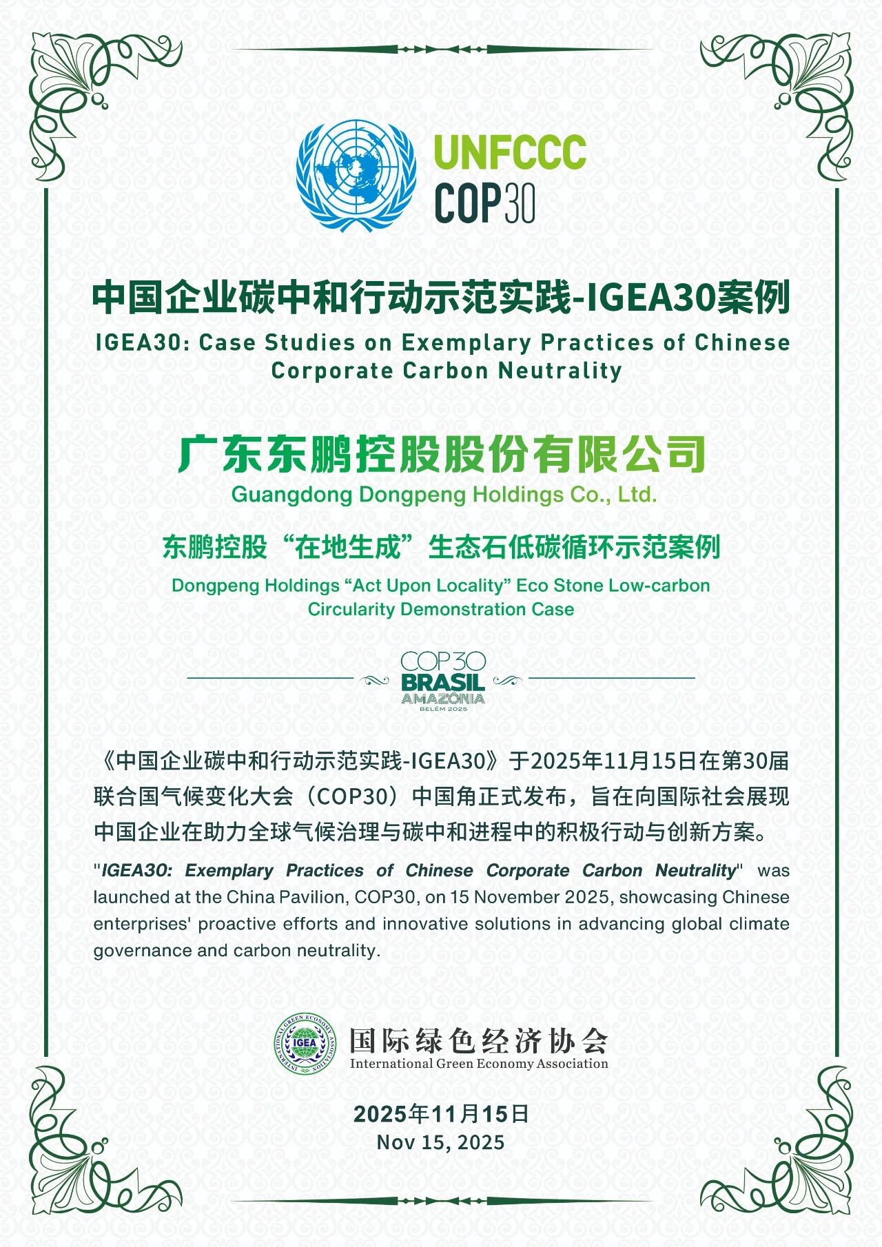2025Äê11ÔÂ15ÈÕ£¬£¬£¬£¬£¬ÔÚ°ÍÎ÷±´Â×¾ÙÐеġ¶ÍŽá¹úÌìÆø×ª±ä¿ò¼ÜÌõÔ¼¡·µÚ30´ÎµÞÔ¼·½´ó»á£¨COP30£©Öйú½Ç¡°ÊÖÒÕÈÕ¡±Ö÷Ìâ±ß»áÉÏ£¬£¬£¬£¬£¬¹ú¼ÊÂÌÉ«¾¼ÃлáÐû²¼¡¶ÖйúÆóҵ̼ÖкÍÐж¯Ê÷ģʵ¼ù-IGEA30°¸Àý¡·¡£¡£¡£¡£¡£ÃÀ²Ê¹ú¼Ê(Öйú)ÓÐÏÞ¹«Ë¾¿Ø¹ÉÒÀ¸½¡°ÔÚµØÌìÉú¡±Éú̬ʯµÍ̼ѻ·Ê÷Ä£°¸ÀýÀÖ³ÉÈëÑ¡£¡£¡£¡£¡£¬£¬£¬£¬£¬Ïò¹ú¼ÊÉç»áÕ¹ÏÖÁËÖйúÆóÒµÔÚÂÌÉ«¿Æ¼¼ÓëÑ»·¾¼ÃÁìÓòµÄÁ¢Òìʵ¼ùÓëÔðÈμÌÐø¡£¡£¡£¡£¡£